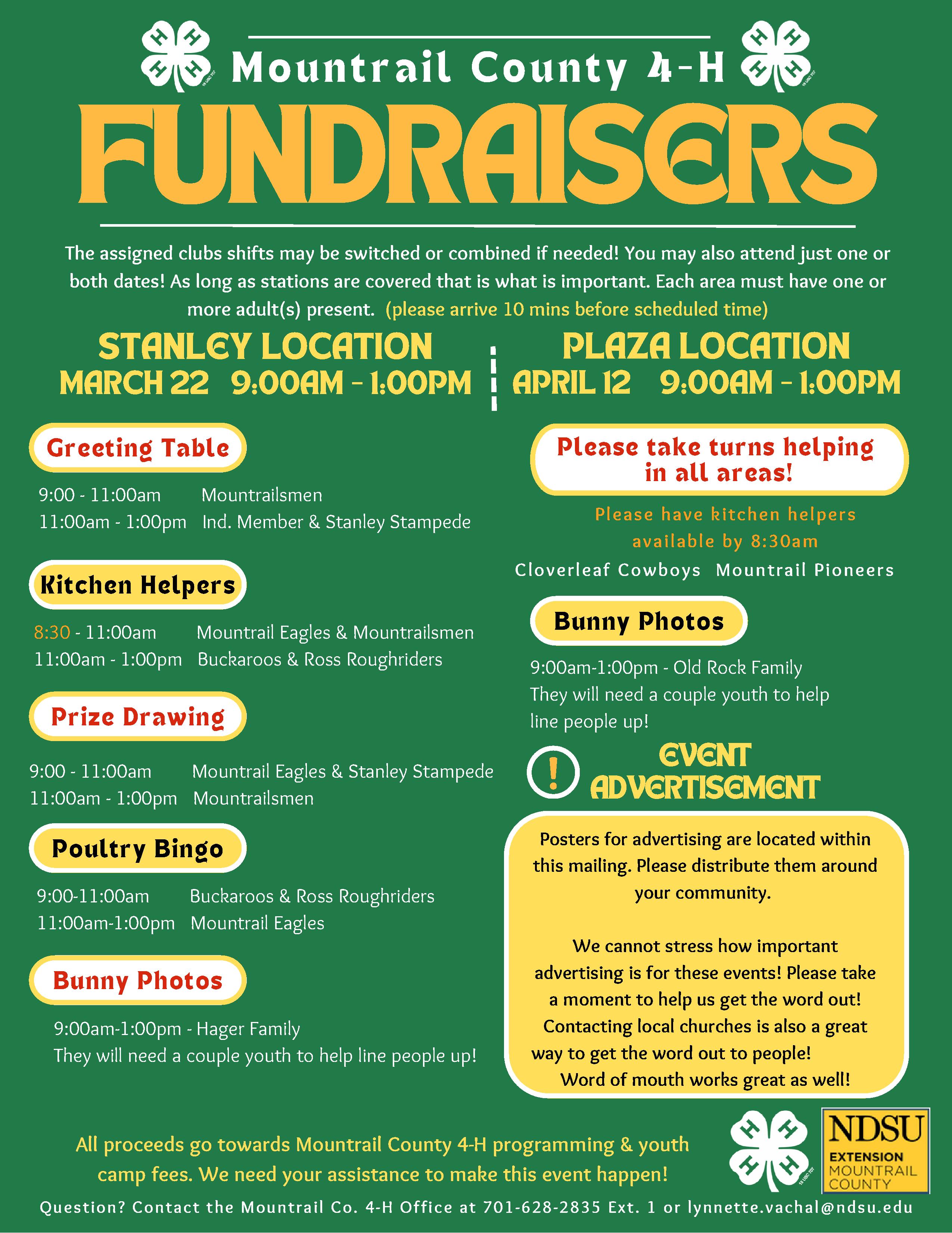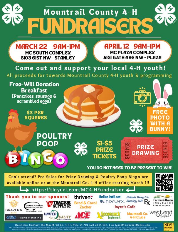 Come out and join us at this years Mountrail County 4-H Fundraisers!