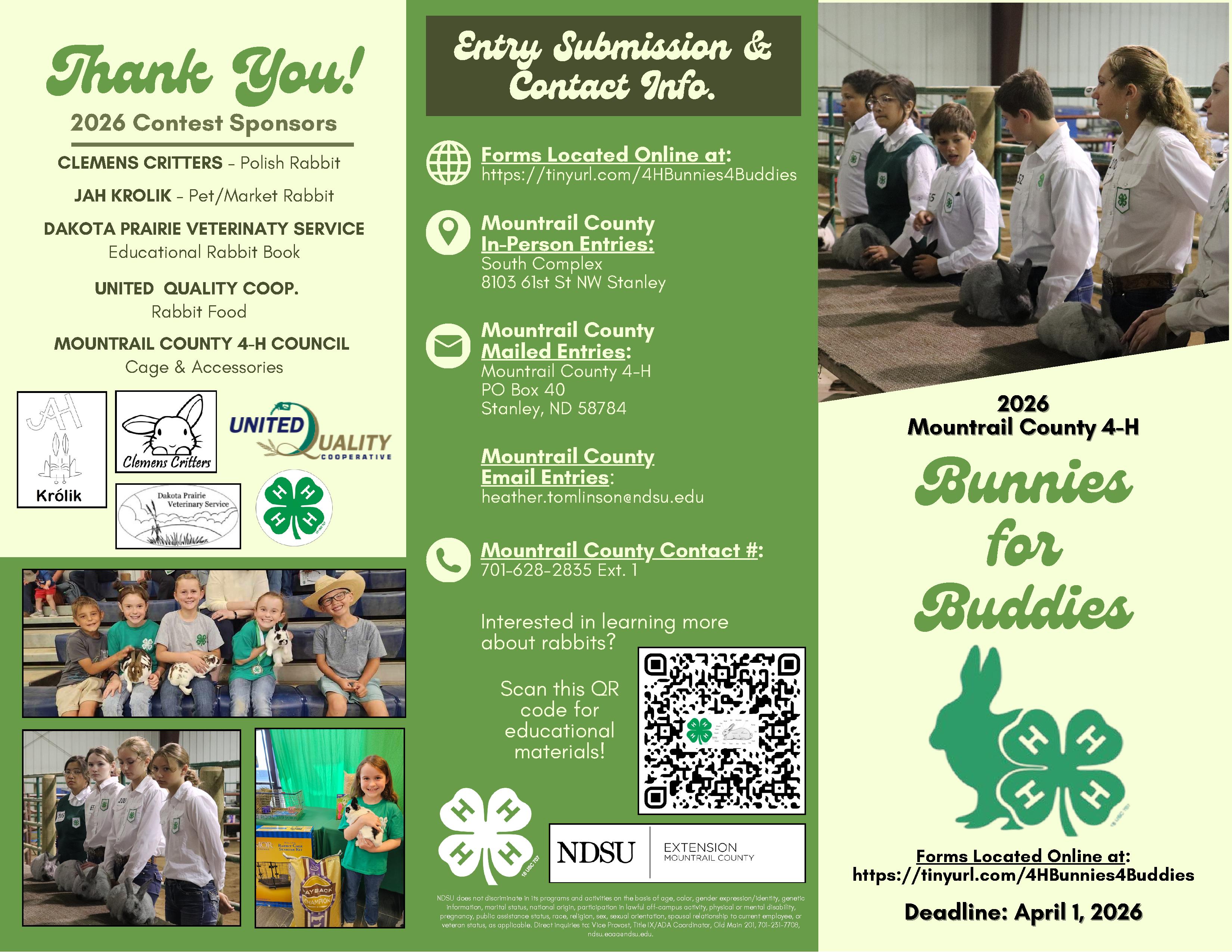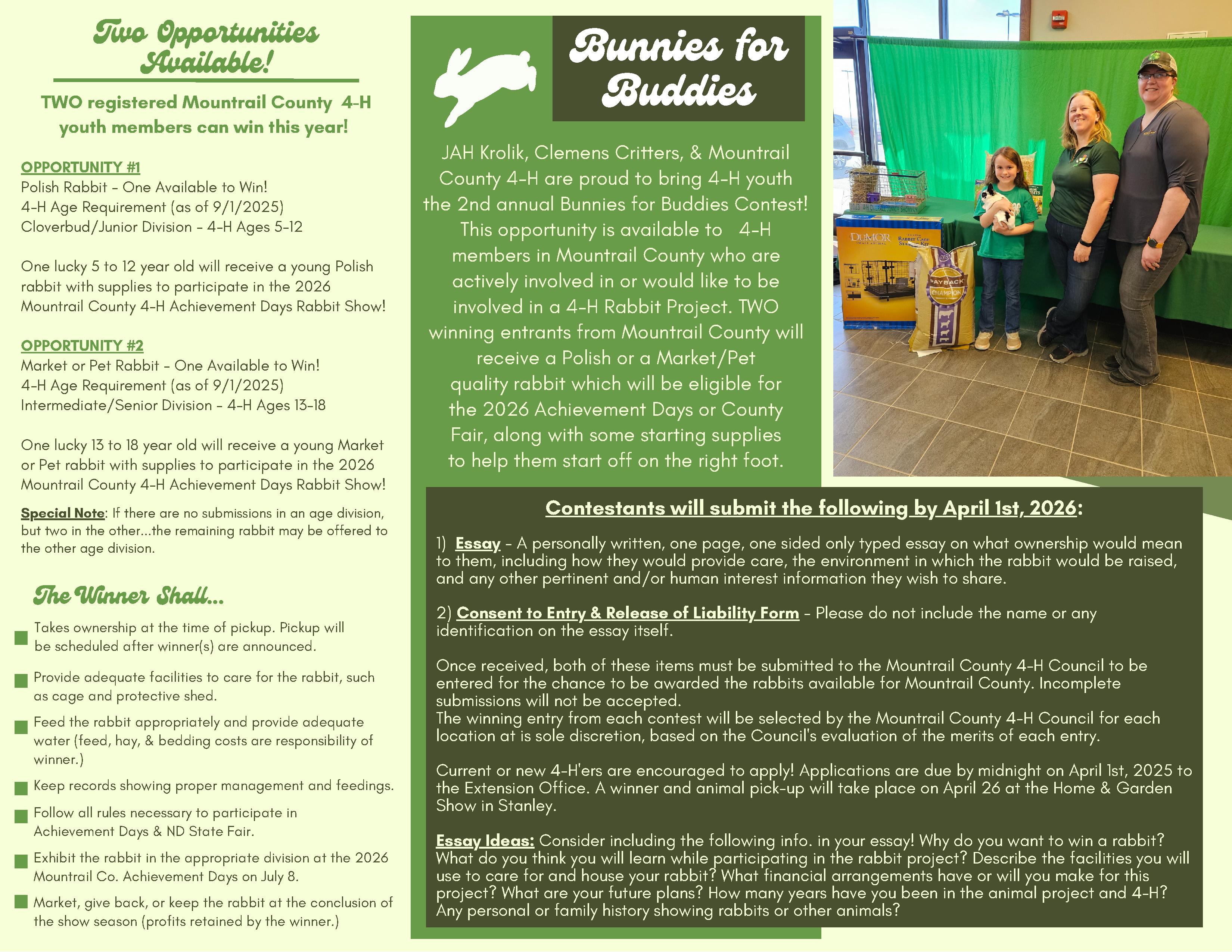 This year we are doing a Bunnies for Buddies contest thanks to Clemens Critters, Jah Krolik Farms, Dakota Prairie Vet Service & United Quality!