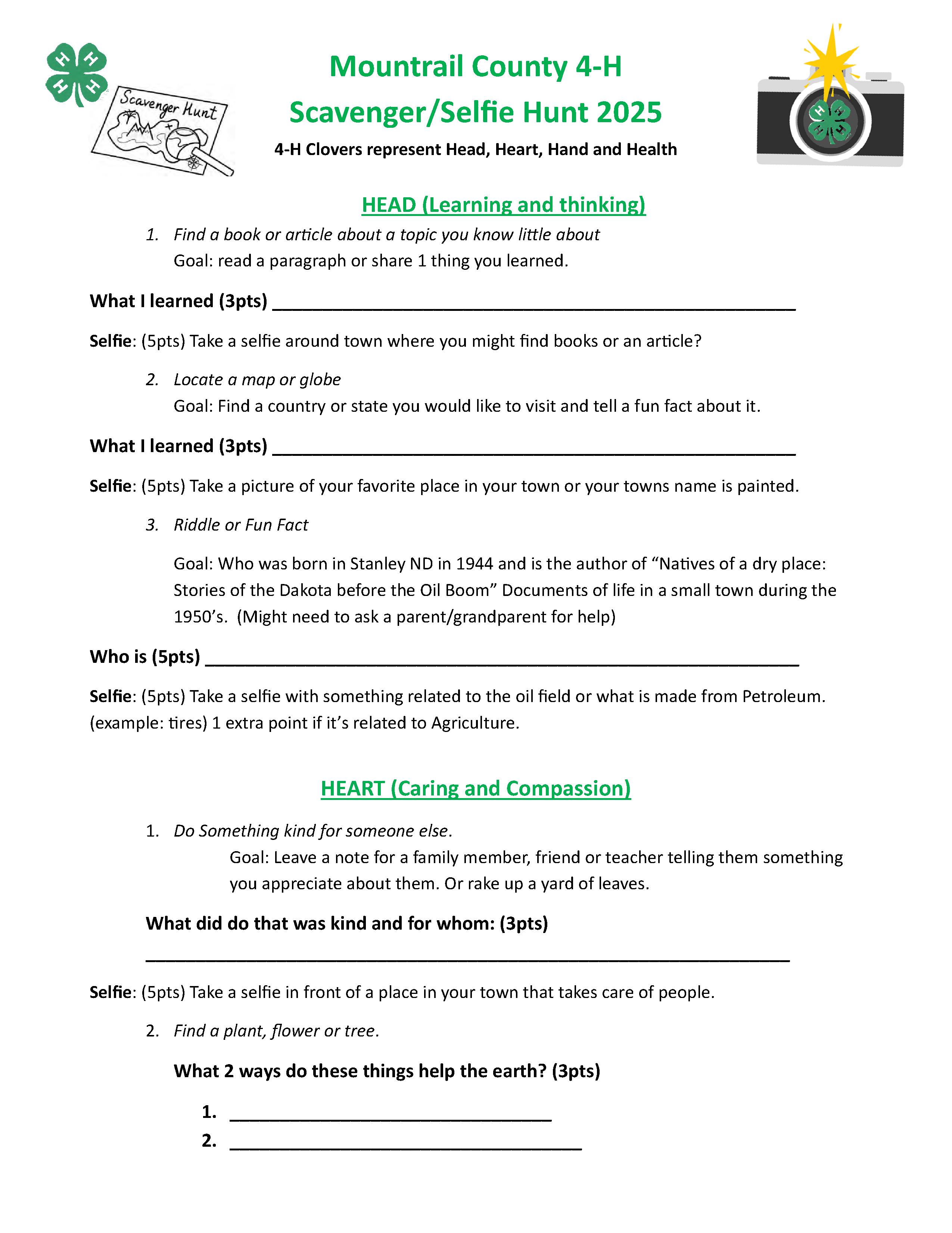 Scavenger/Selfie Hunt! Click HERE for the form - Due by 8am on Oct. 20.